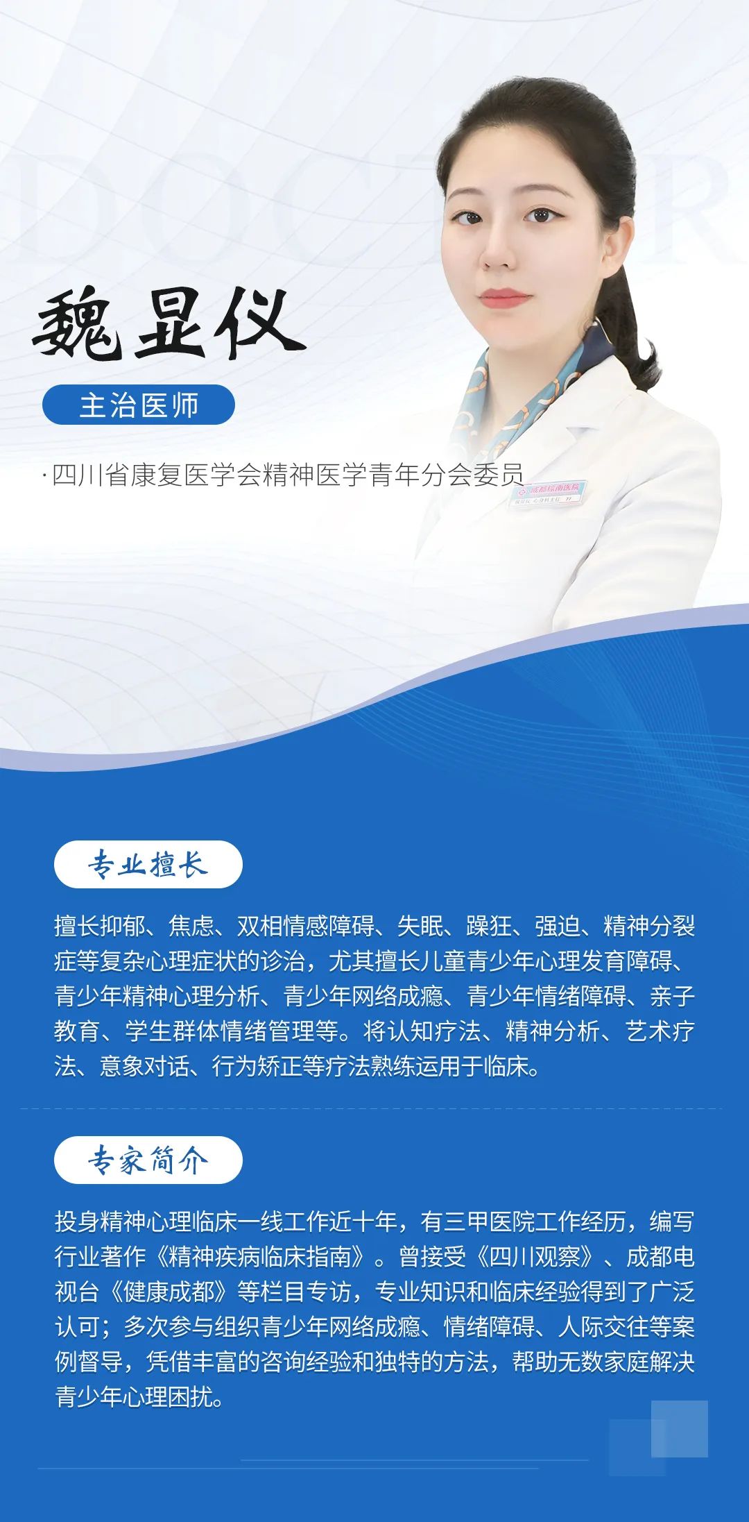 《魏姐姐讲心理》自上线以来,以真实的场景、专业的讲解、深度的共情,直戳患者泪点,全网粉丝已破百万,成都电视台《健康成都》栏目、抖音、视频号等媒体广为转发。